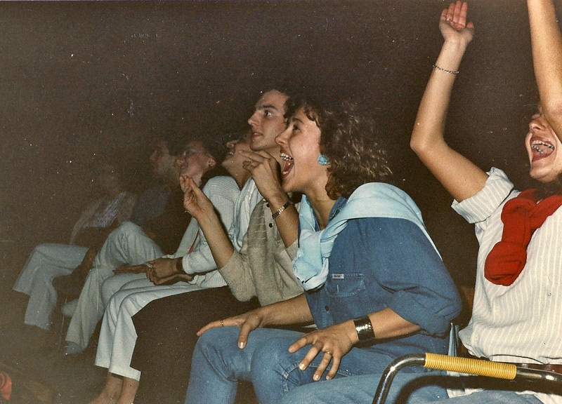 Superfansine e qualche fansiere all’esibizione nr.20, 29 settembre 1985, per l’inaugurazione dello “Screen video club”, circolo Arci di Copparo (Fe). Qui il link a un frammento sonoro, in feroce bassa fedeltà, ma in grado di restituire il tono della serata: http://00468f7.netsolhost.com/LMT/songobucco/mp3/Rares_Live/BHCopparo_Live85.mp3
