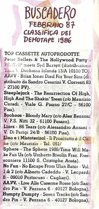 Rassegnatina Stampa Buscadero: top ten autoproduzioni 1986 (in audiocassetta) Immagine 22 febbraio 1987 brianfeboconti Lascia un commento