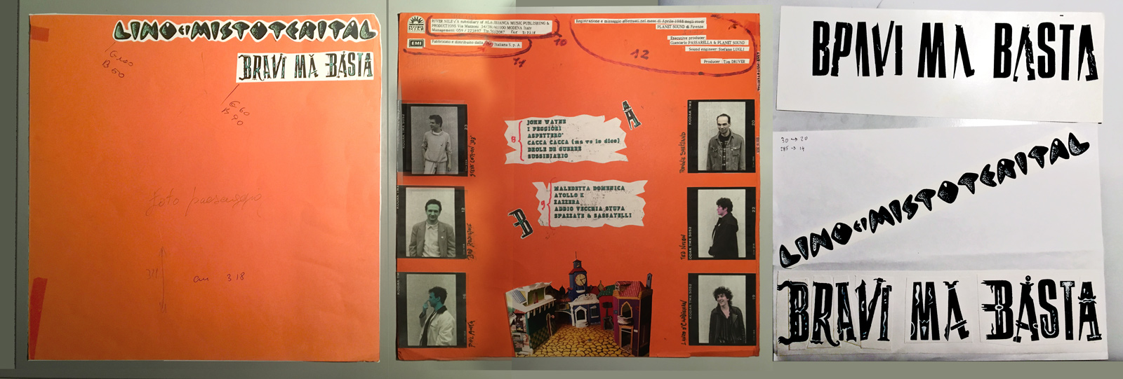 Bozzoni per la cover di “Bravi Ma Basta”, cartoncino bristol, pennarelli, foto incollate, evidenziatore, fotocopie, lieta poverizia. #LMT #linoeimistoterital #records #vinyle #theeighties #80s #bravimabasta #italianrock #disegniGrassilli #graphics
