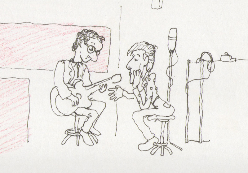 Scarabocchiume nelle lunghe ore di studio di registrazione a Firenze, nel 1988. Il producer Tim lavora con Bob Rodia sui riff delle canzoni. Schizzo in diretta a notte fonda. #LMT #linoeimistoterital #records #tape #theeighties #80s #bravimabasta #italianrock