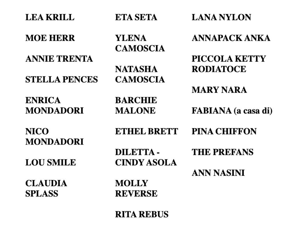 La sera della REUNION del 6 dicembre 2002 all’Estragon, c’era in scaletta una cover consueta per LMT: “With a Girl Like You“, dei Troggs. Ai tempi dell’attività “ufficiale” della band, la canzone veniva utilizzata anche per parodiare un vecchio storico filmato di Bob Dylan, un paleo-videoclip in cui il Grande Nasone mostrava dei cartelli con le frasi più significative del brano (che è “Subterranean Homesick Blues” dal film/documentario “Don’t look back“). I nostri, indegnamente riprendevano la scenetta con altri contenuti, che sono variati nel tempo (di solito era una recriminazione per la mancanza di donne o di adeguati compensi). Nella speciale occasione della “Reunion”, i Teritals decidono invece di usare il vecchio giochetto per omaggiare la componente femminile del Fanclèb. Ecco dunque che Phil Anka, partendo da un foglio con su scritto: “With a girl like” sfoglia i nomi delle principali fiancheggiatrici della band, signorine che hanno dato sudore e urla a numerose esibizioni dei nostri, e anche aiuti più consistenti, come racconteremo nell’apposita sezione. Al termine della sequenza, tre cartelli recitavano “WAS BEAUTIFUL, THANKS“, commuovendo le reduci presenti nel locale. A gentile richiesta, l’elenco delle Fansine ringraziate in pubblico.