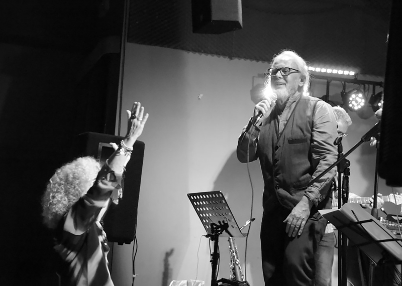 La festeggiatissima Enrica “Ica Mondadori” con Massimo Ortensi dei “Camelot”.