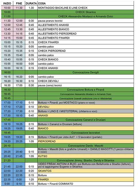 | Ed ecco, in dettaglio, le sessioni alla Down By Me:
