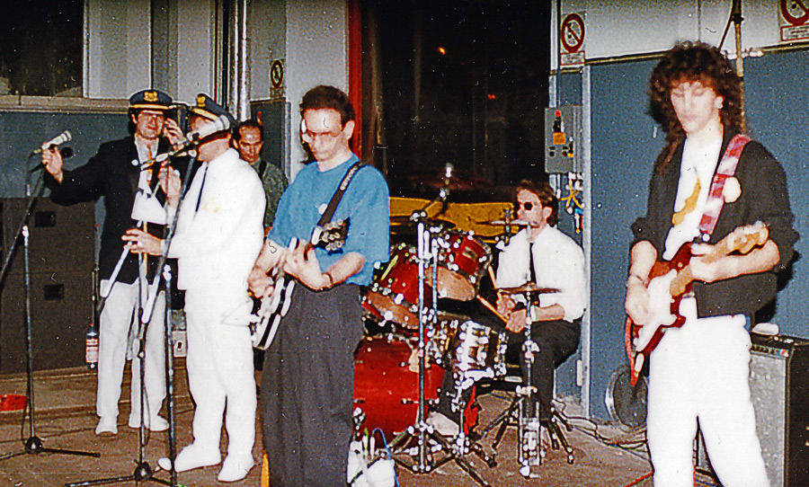 Festa di presentazione per l’uscita di “Bravi Ma Basta”, deposito delle Locomotive FS, Bologna, 25/06/1988. Basta parlare, adesso suonare. #LMT #band #Linoeimistoterital #BraviMaBasta #records #vinyle #Eighties #80s’ #FS #trains #railways